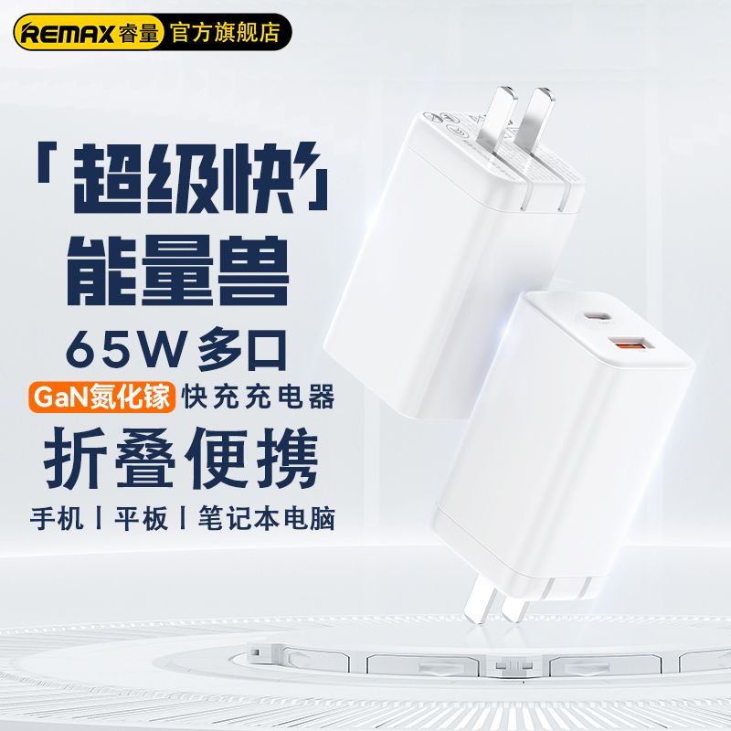 百亿补贴REMAX65W氮化镓充电器超级快充电头双口USB适用苹果pd手机笔记本