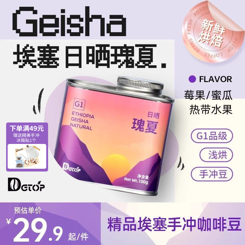 旗舰店DGTOP瑰夏咖啡豆埃塞耶加雪菲阿拉比卡手冲单品浅烘现磨美式咖啡