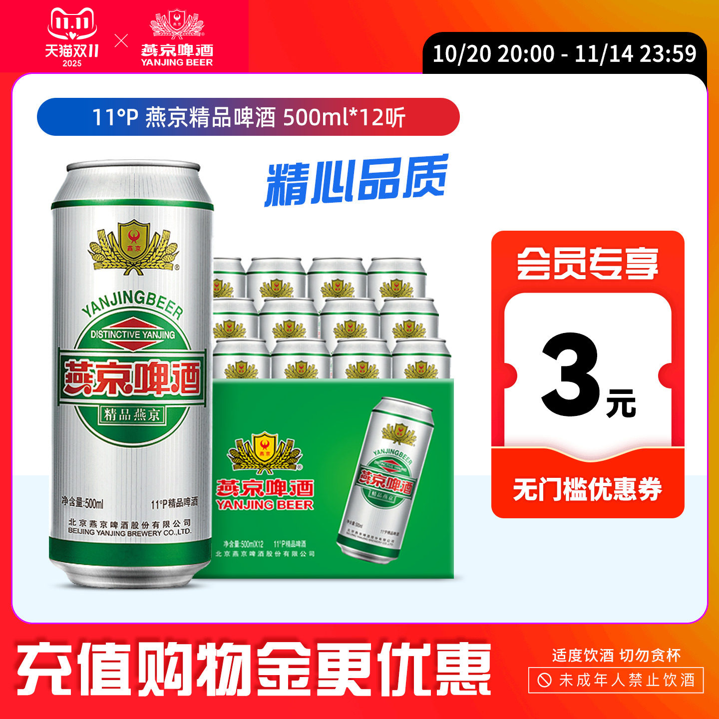 燕京啤酒精品啤酒500ml 多罐装正品啤酒整箱批发特价